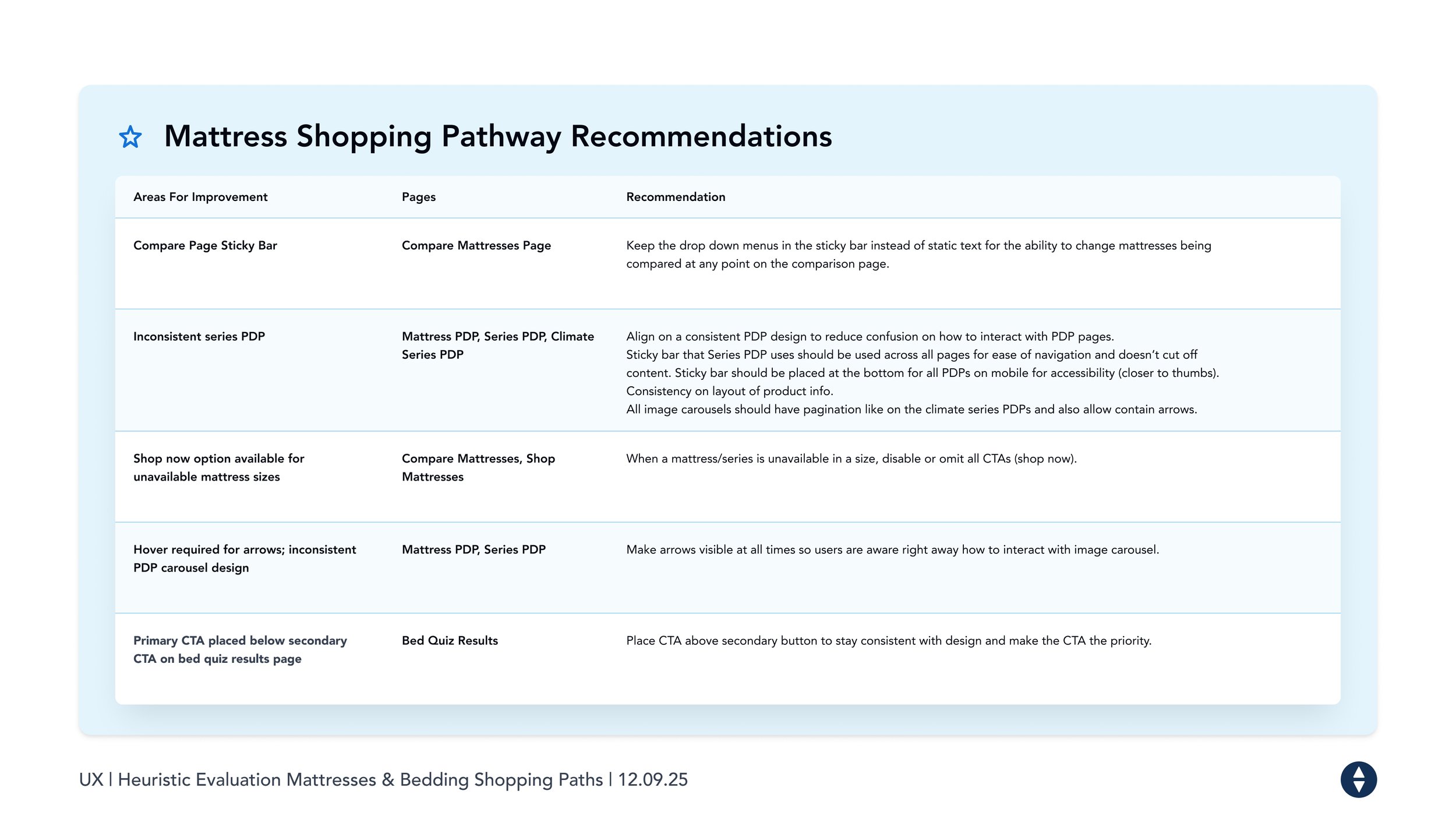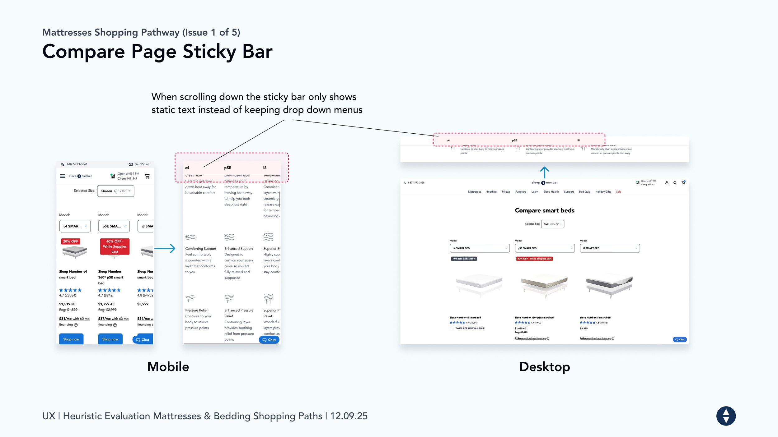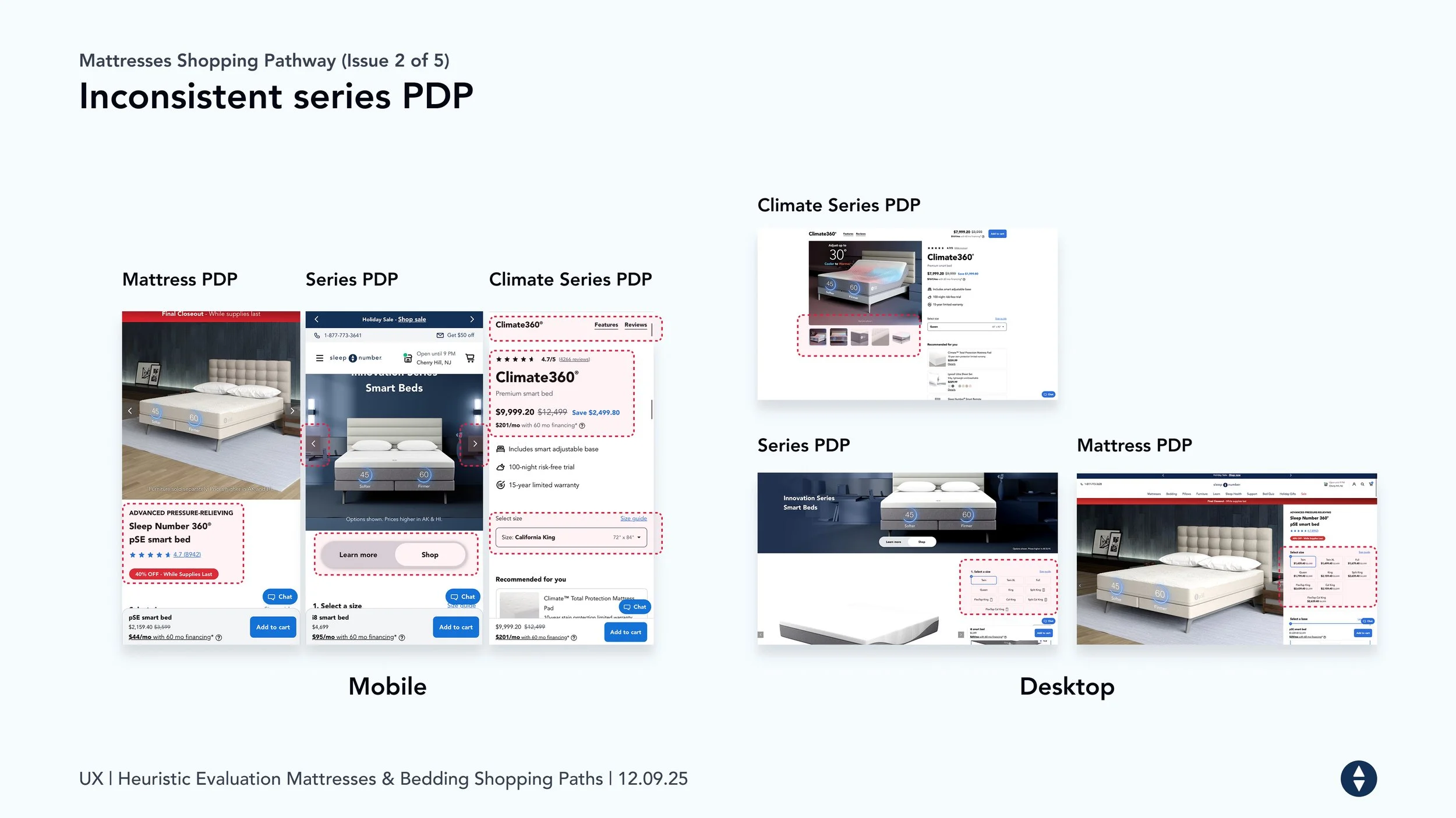 As a Senior UX Designer at Sleep Number, I played a key role in shaping the brand’s digital ecosystem—designing experiences that guided customers through every stage of the online shopping journey. My work spanned from creating and maintaining a robust design system to developing responsive product pages and optimizing checkout flows that supported more than $11B in net sales. I helped define a cohesive visual and interaction language across platforms, ensuring consistency, accessibility, and alignment with brand and business objectives.